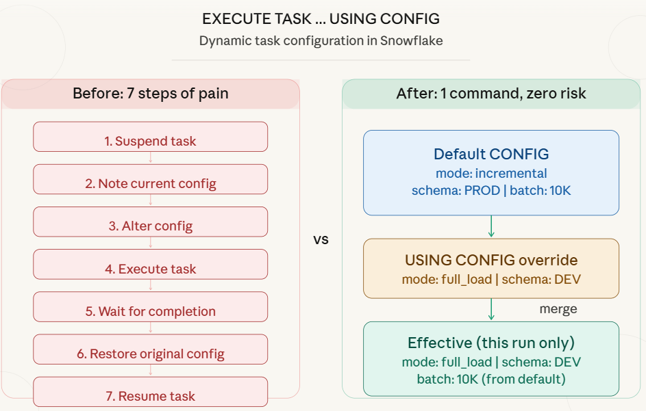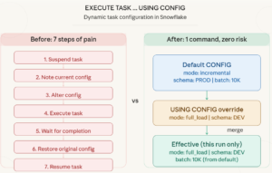 Every data engineer who has worked with Snowflake Tasks config has faced this scenario: your pipeline runs perfectly in production on a daily schedule. Then someone walks up and says: “We need a one-time full reload for January data — something went wrong at source.” “Can you run the pipeline […]