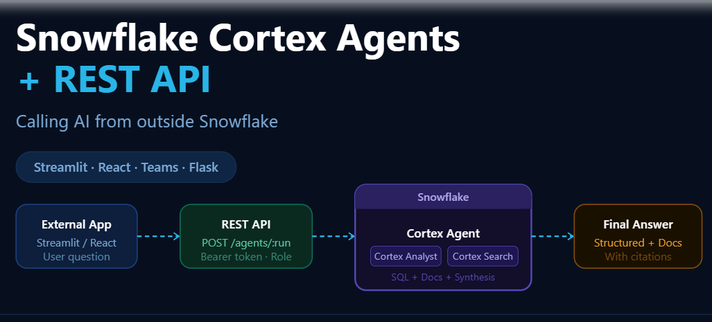A Cortex Agent is an AI reasoning engine that lives entirely inside your Snowflake account. It is not just a chatbot. It is an autonomous orchestrator that: Understands natural language questions Classifies intent — structured data query? document lookup? or both? Routes to the right tools — Cortex Analyst for […]