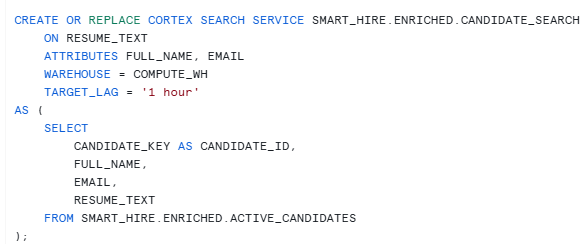 Instead of embedding all resumes and doing only pairwise ranking, we now use Cortex Search to retrieve the most relevant resumes for a recruiter’s question.